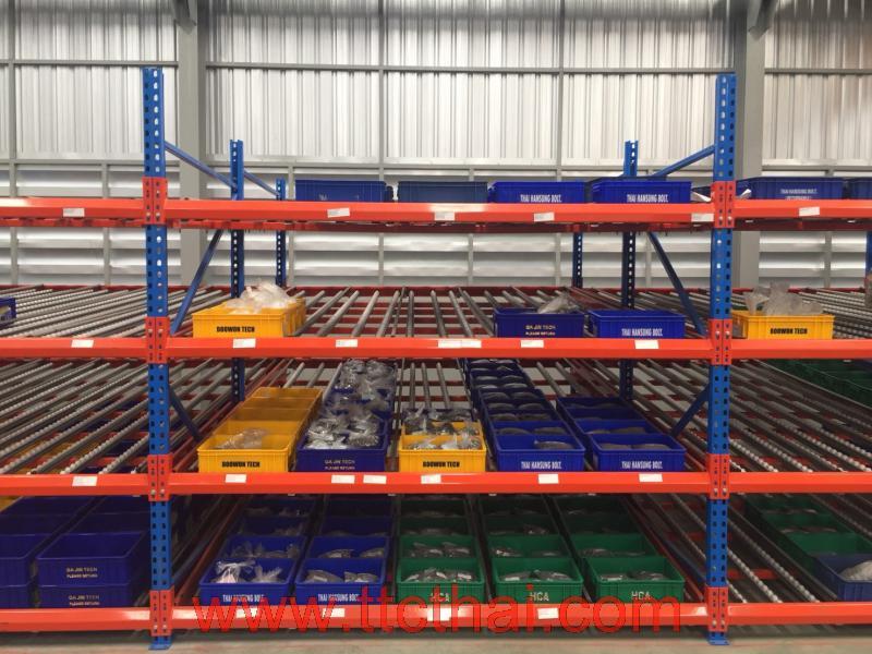 Designed for placing a box or plastic crates. And that looks turnover Stock picking in Characteristics Is used to refill or enter from the rear Pick Flow then used to wander along the slope of the rail to the front when picking or unloading out front. In order to replace it, it will make it easier to control in-stock products effectively.